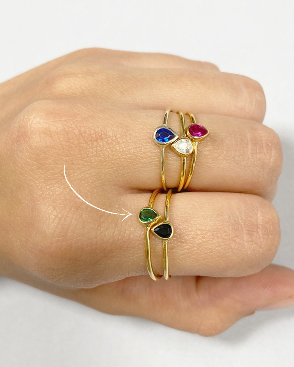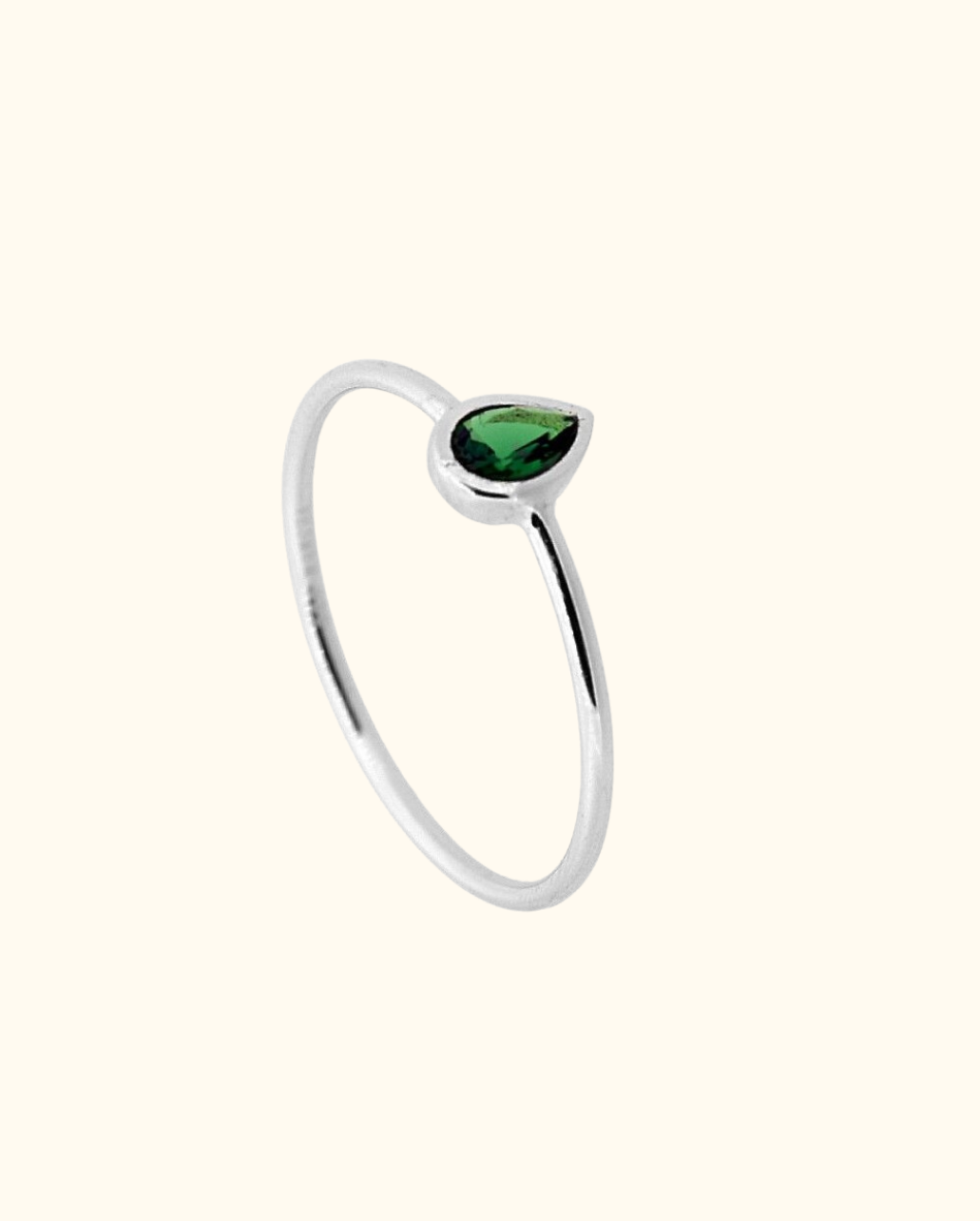 Nuestro anillo Gota de Circonita Verde es la pieza perfecta para añadir un toque de brillo a tu look. Disponible en plata de primera ley y plata 925 bañada en oro, luce este anillo básico que combina estilo y calidad en un solo diseño.