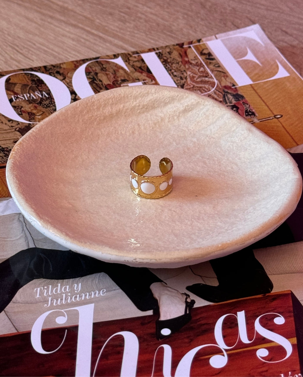 ¡Anillo White Points de acero inoxidable, el complemento perfecto para tu estilo! Fabricado con un 100% de acero inoxidable, este anillo es ajustable para adaptarse a cualquier tamaño de dedo. Atrévete a lucir un look elegante y moderno con este anillo único.