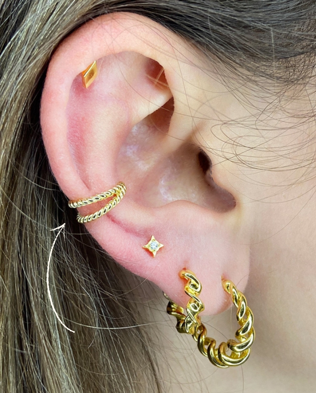 ¡Deslumbra con estos increíbles Ear Cuff Dual Twine Twist! Fabricados en plata de primera ley y plata 925 bañada en oro, estos elegantes ear cuffs son el accesorio perfecto para cualquier ocasión. Su diseño retorcido y dual le da un toque único y distintivo. Además, su material de alta calidad garantiza durabilidad y resistencia. No esperes más para agregar este impresionante accesorio a tu colección.