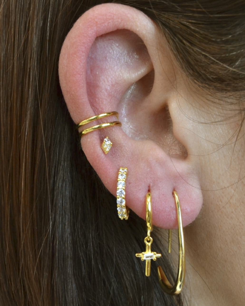 ¡Elegante y moderno! El Ear Cuff Slim es el accesorio perfecto para añadir un toque de estilo a tu look. Hecho de plata 925 bañada en oro, este ear cuff es ligero y cómodo de llevar.